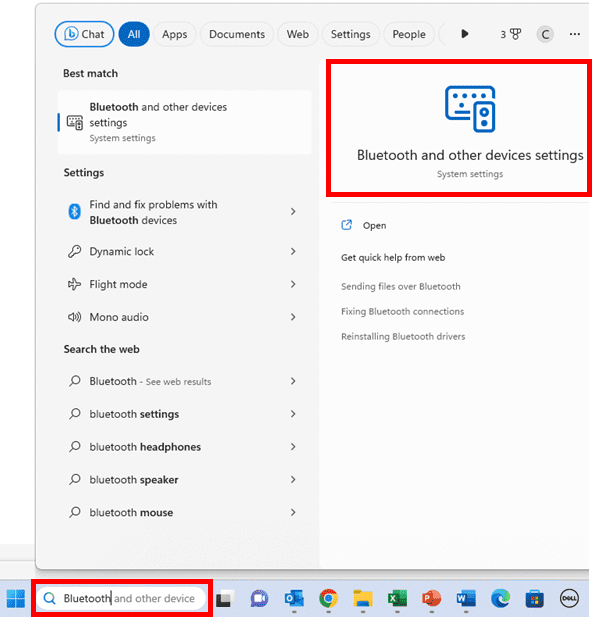 - while the USB is plugged in, open the Bluetooth and other device settings via Windows Search.