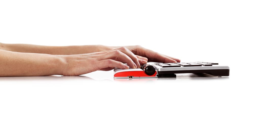 RollerMouse Re:d, unlike a traditional mouse, sits in front of your keyboard instead of to the left or right. This eliminates the need for reaching for the mouse and will greatly reduce unnecessary muscle activity in your arms, shoulders, and neck.