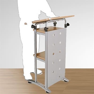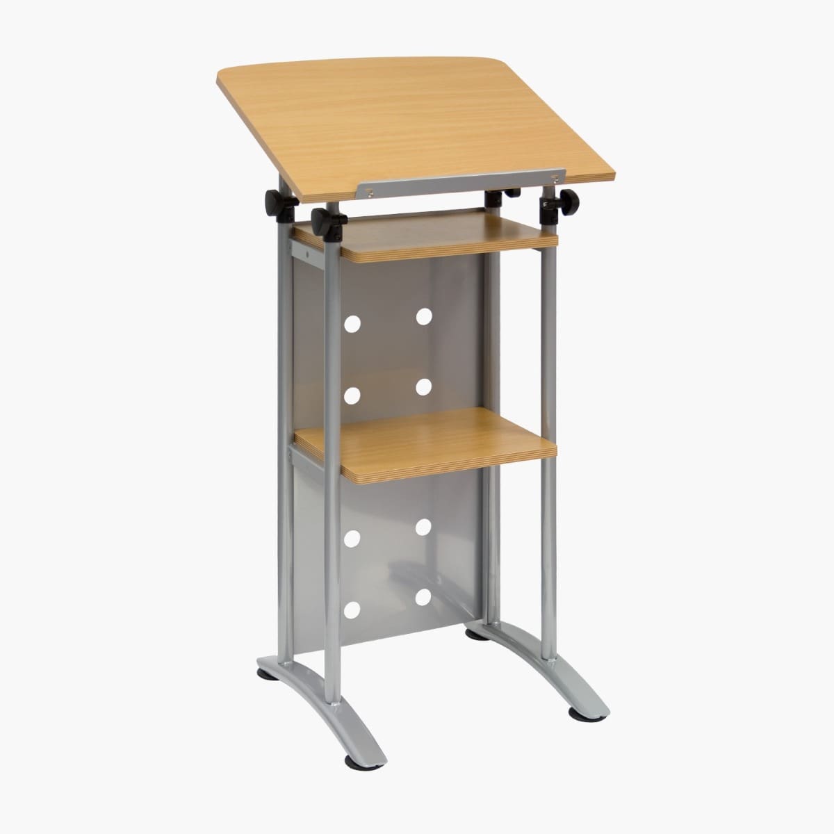 Presentation Lectern with two shelves and a height and tilt adjustable top.