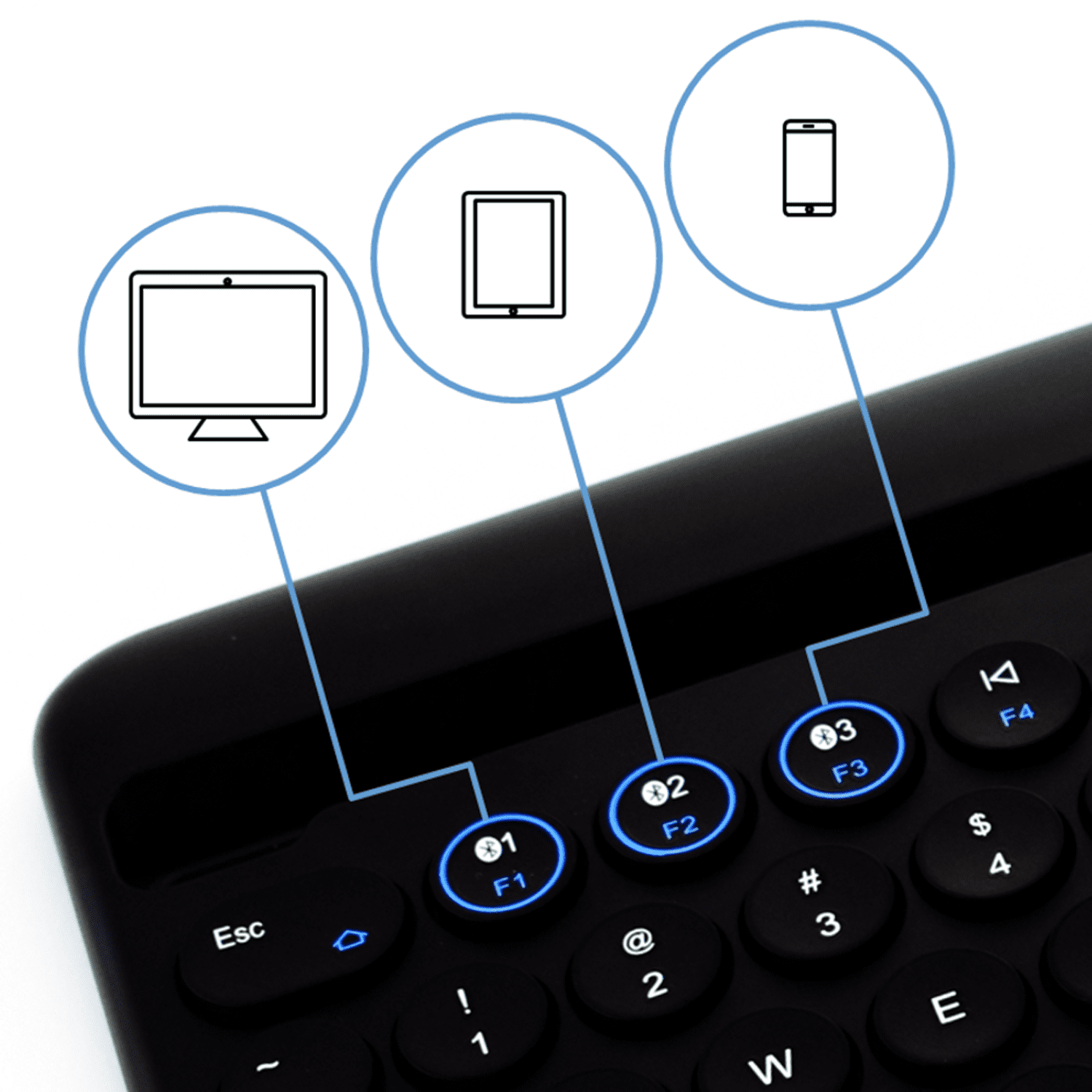 Shift between up to 3 devices with the press of a button. Once the devices are synced to the keyboard, via Bluetooth, multitasking across devices is easy.