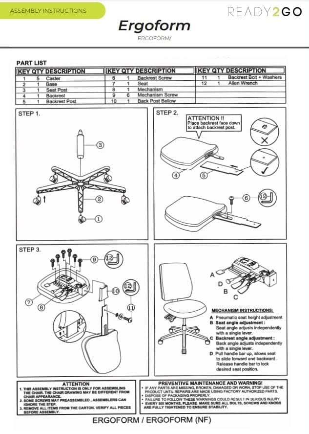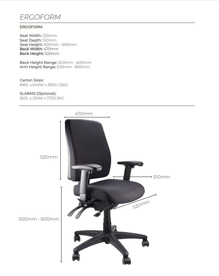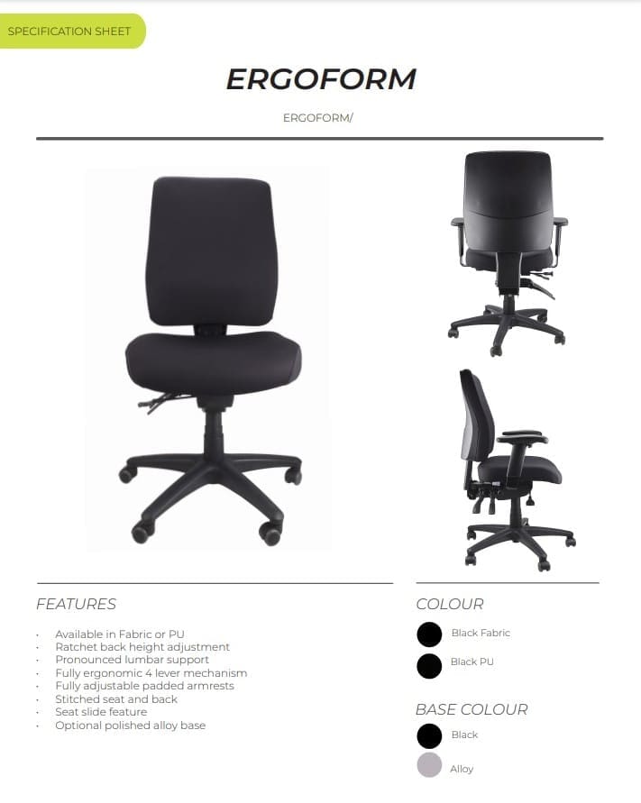 Purchase includes: 1 x Ergoform Task Chair