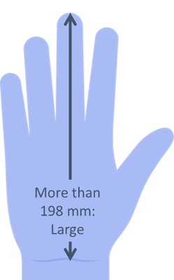 – Large (L): Suitable for hands that measure more than 198mm from the tip of the middle finger to the wrist crease.