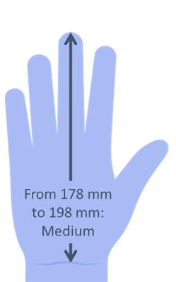 Size: M/L For hands that are more than 178mm from the tip of the middle finger to the wrist crease