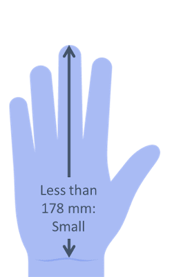 – Small (S): Suitable for hands that measure less than 178mm from the tip of the middle finger to the wrist crease.