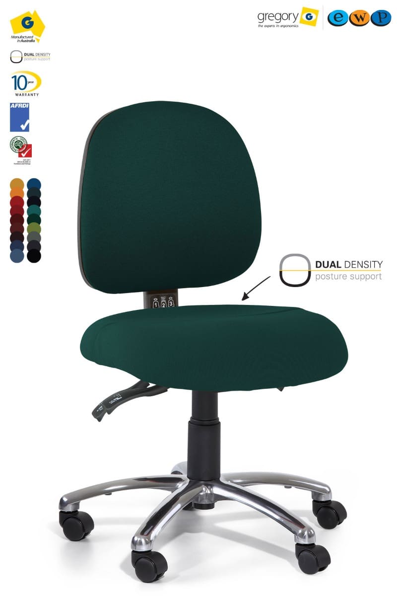 DISCONTINUED RANGE. AVAILABLE ONLY WHILE STOCK LASTS. Premium workplace seating solution with a 160kg Weight Rating, adjustable seat height, tilt and back angle with the award winning Dual Density Posture Support Seat Technology.