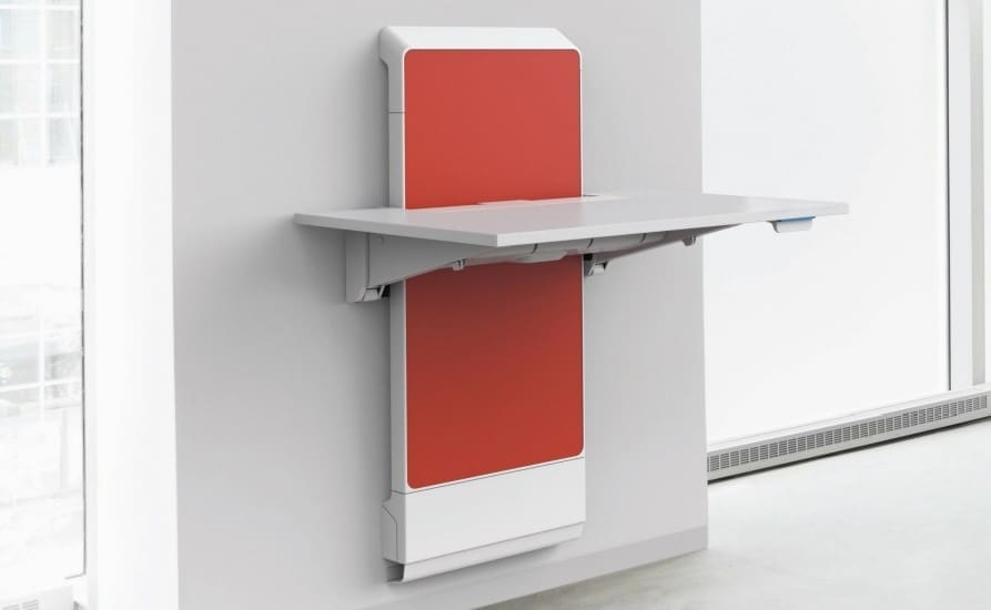 The non-electric, adjustable surface provides the full BIFMA ergonomic range - an industry first-for comfortable sitting or standing. Reclaim valuable space by flipping down the worksurface when not in use.