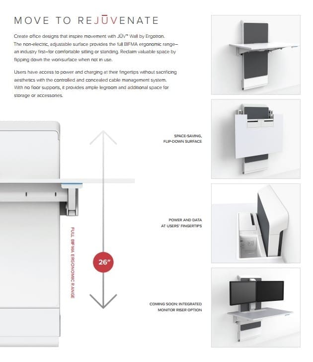 Create office designs that inspire movment with JUV Wall by Ergotron.