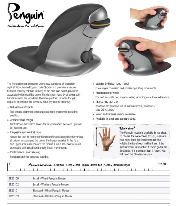 The Penguin Mouse puts your hand in a natural and restful position like a handshake.