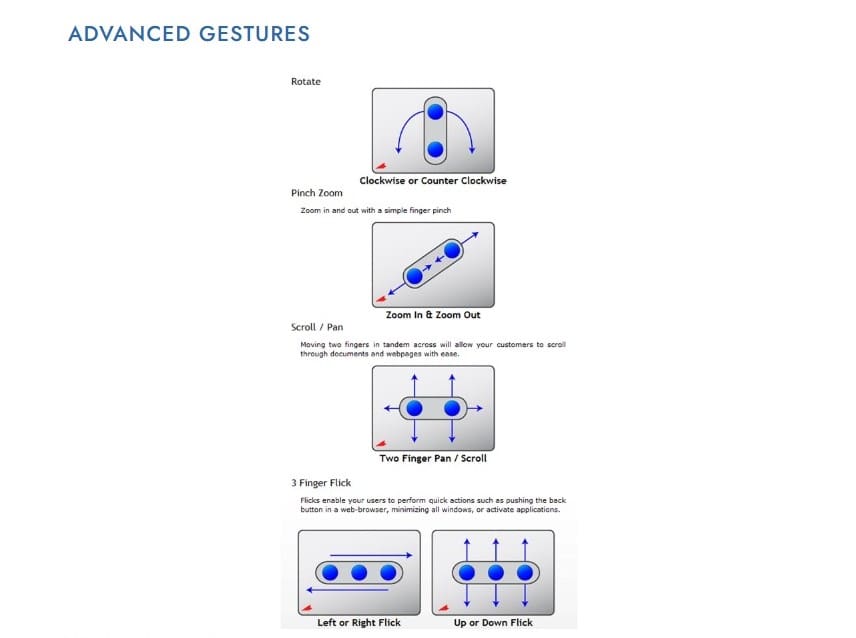 - Multi-finger Advanced Gestures available: scroll, zoom, rotate and more