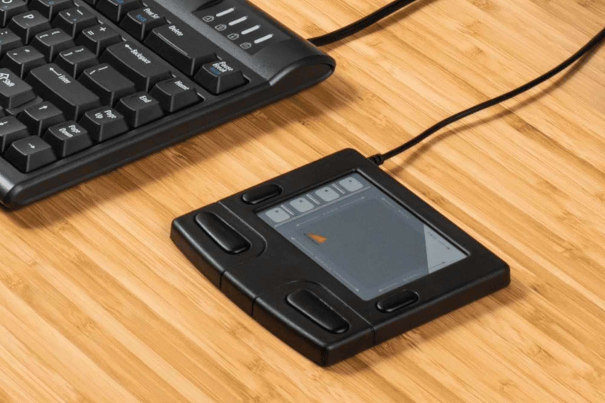 - Three programmable mechanical buttons and corner tap zone. The two vertical buttons on either side of the touch surface perform the same action.