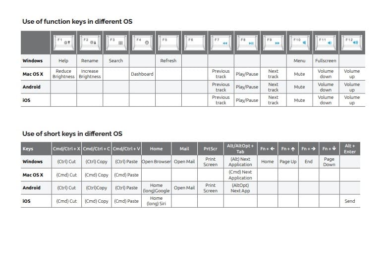 Compatible Operating System: Windows and Mac OS (For Mac OS: Hot Keys and Apple command keys do not work)